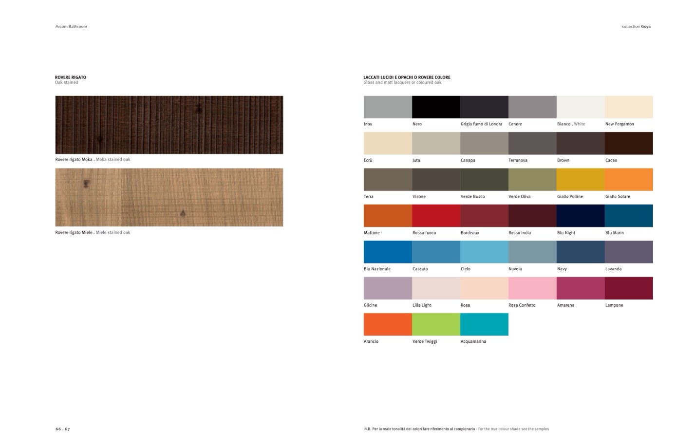 N.B. Per la reale tonalità dei colori fare riferimento al campionario - For the true colour shade see the samples