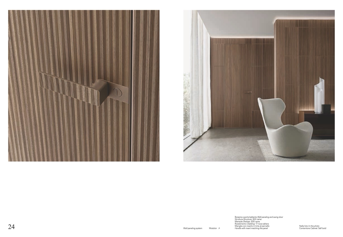 Boiserie e porta battente Wall paneling and swing door