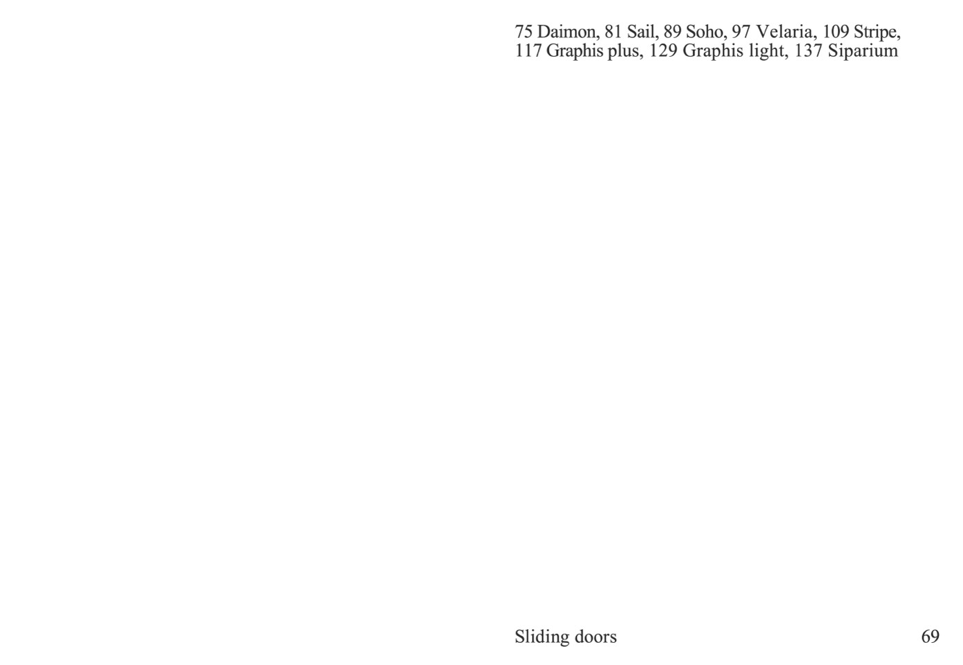 75 Daimon, 81 Sail, 89 Soho, 97 Velaria, 109 Stripe,