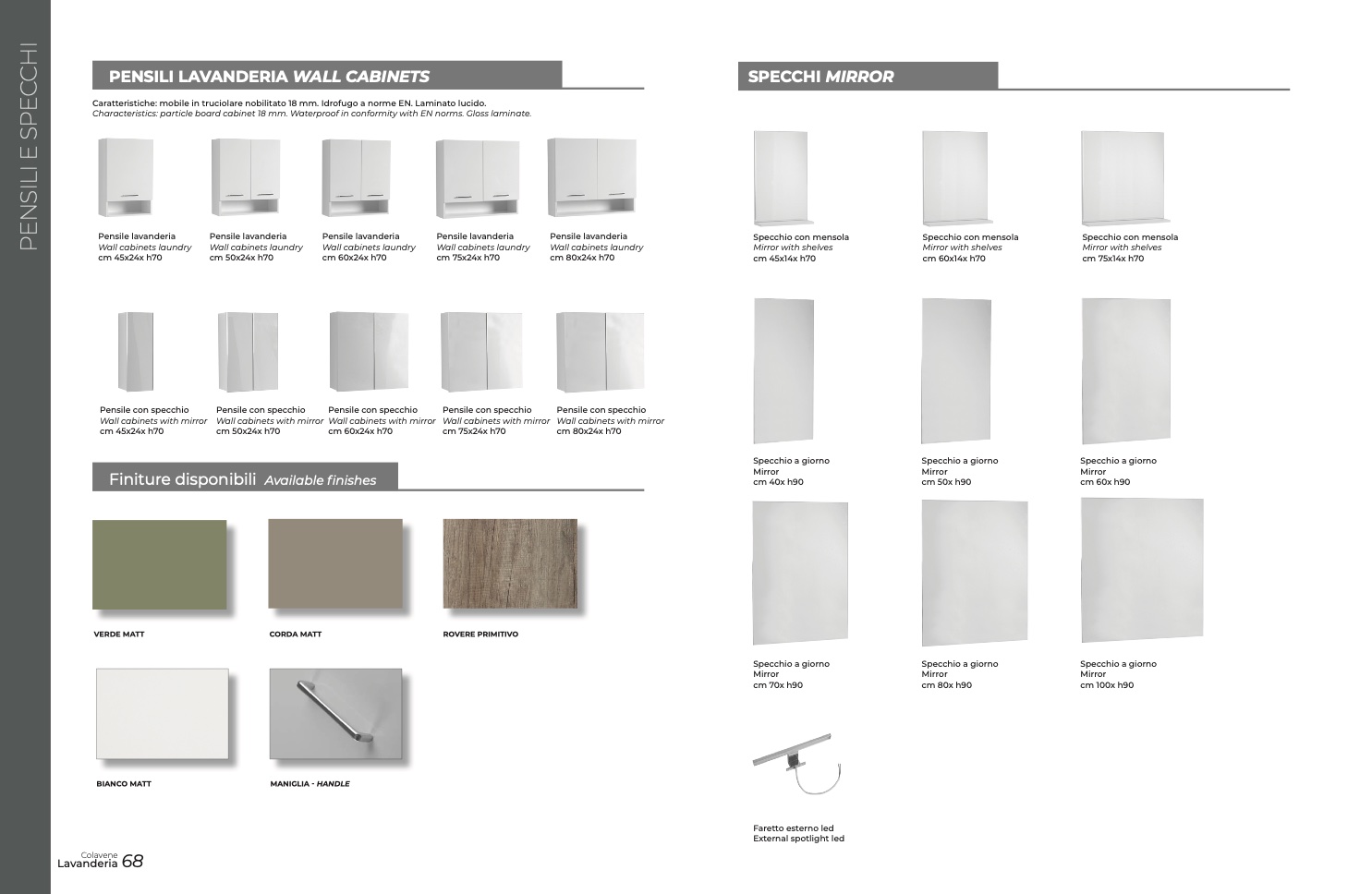 Characteristics: particle board cabinet 18 mm. Waterproof in conformity with EN norms. Gloss laminate.