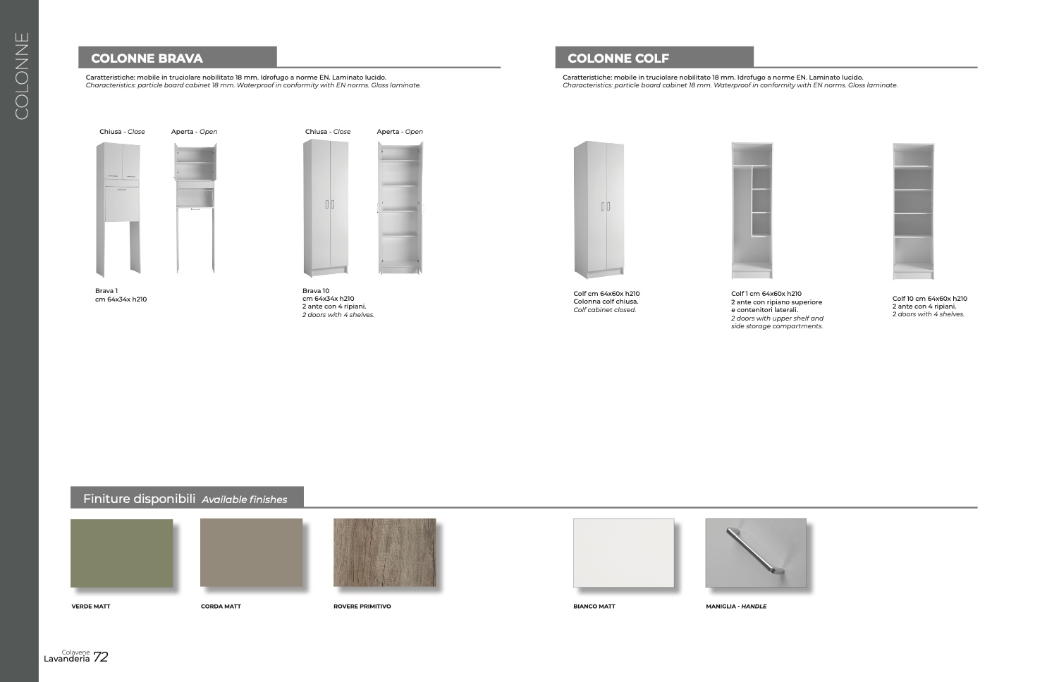 Characteristics: particle board cabinet 18 mm. Waterproof in conformity with EN norms. Gloss laminate.