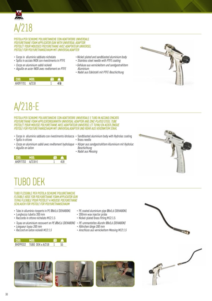 PISTOLE FÜR POLYURETHANSCHAUM MIT UNIVERSALADAPTER UND ROHR AUS VERZINKTEM STAHL