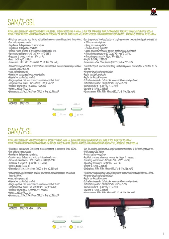 PISTOLA PER SIGILLANTI MONOCOMPONENTI IN SACCHETTO FINO A 600 ml. | GUN FOR SINGLE-COMPONENT SEALANTS IN FOIL PACKS UP TO 600 ml