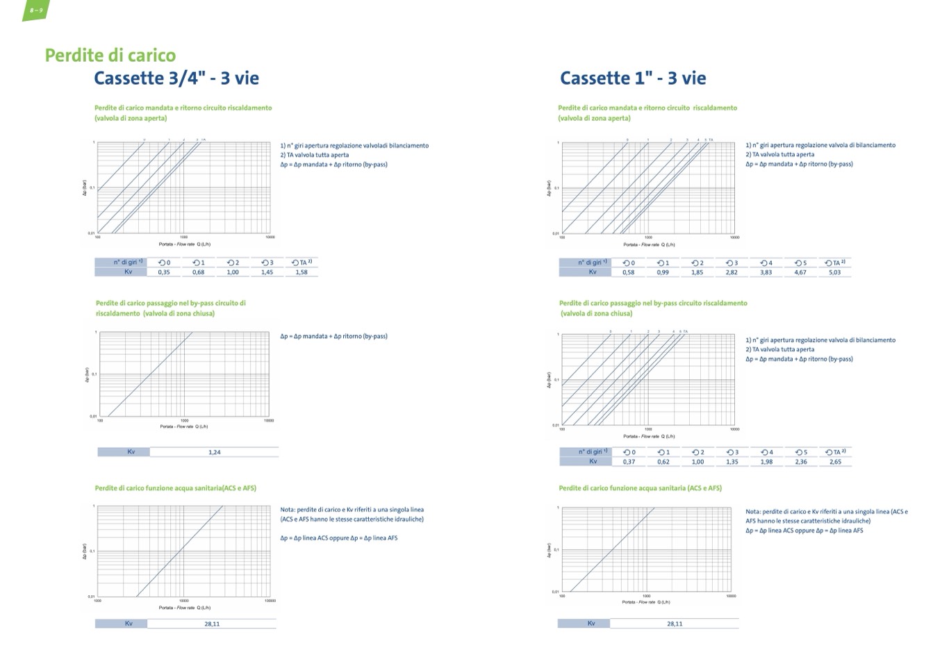 Nota: perdite di carico e Kv riferiti a una singola linea (ACS e