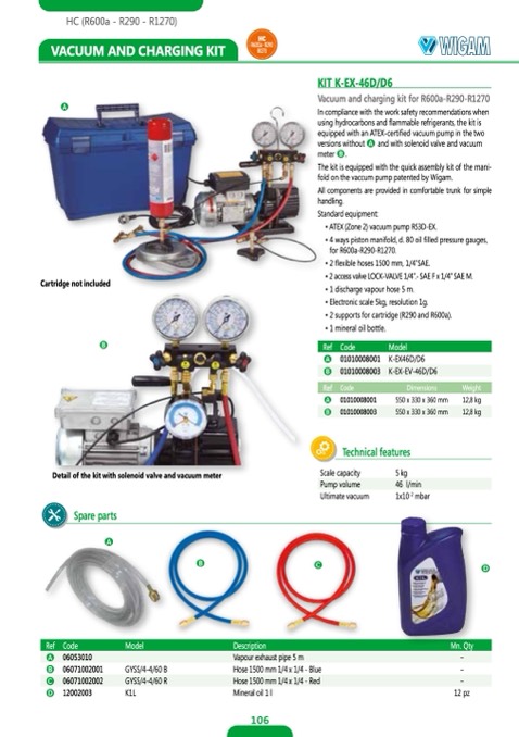 using hydrocarbons and flammable refrigerants, the kit is