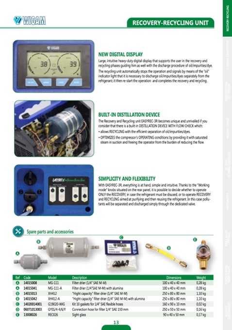 and RECYCLING aimed at purifying and then reusing the refrigerant. In this case pollu-