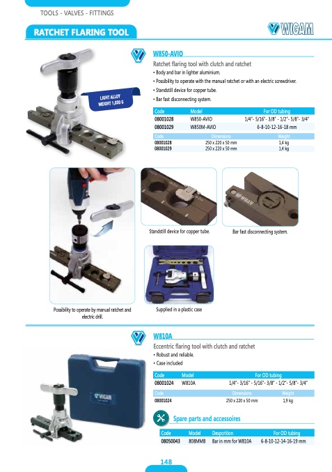 • Possibility to operate with the manual ratchet or with an electric screwdriver.