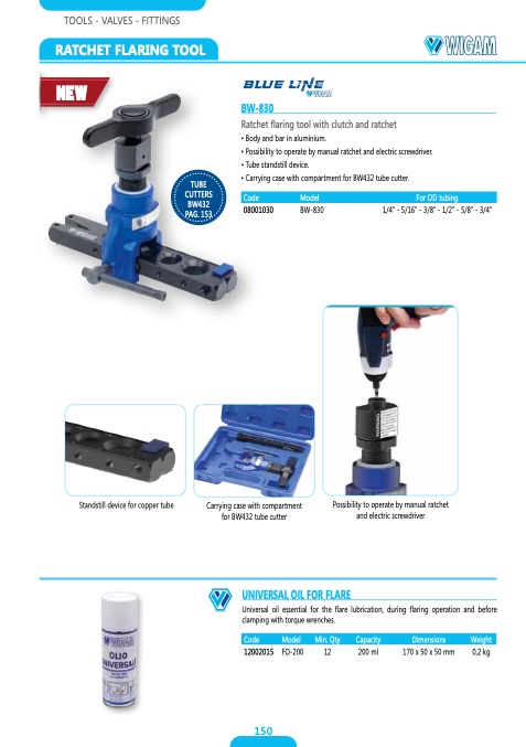 • Carrying case with compartment for BW432 tube cutter.