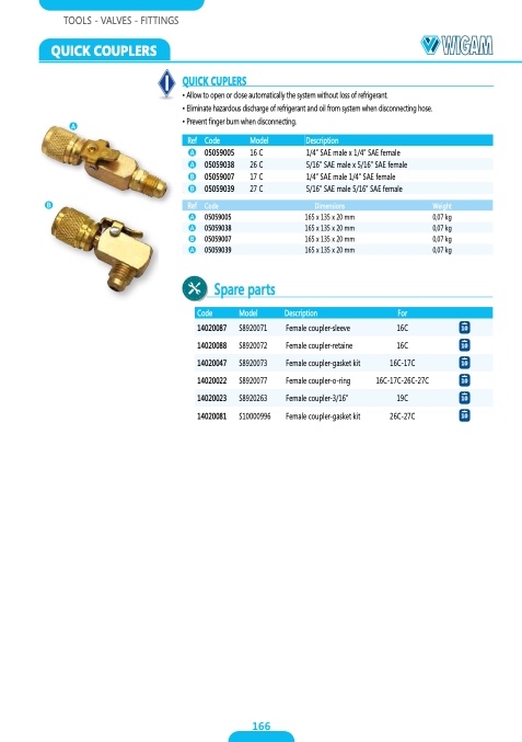 • Allow to open or close automatically the system without loss of refrigerant.
