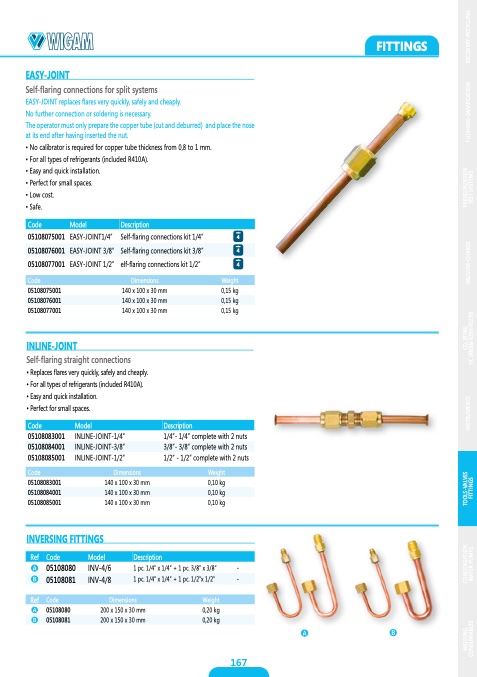 • No calibrator is required for copper tube thickness from 0,8 to 1 mm.