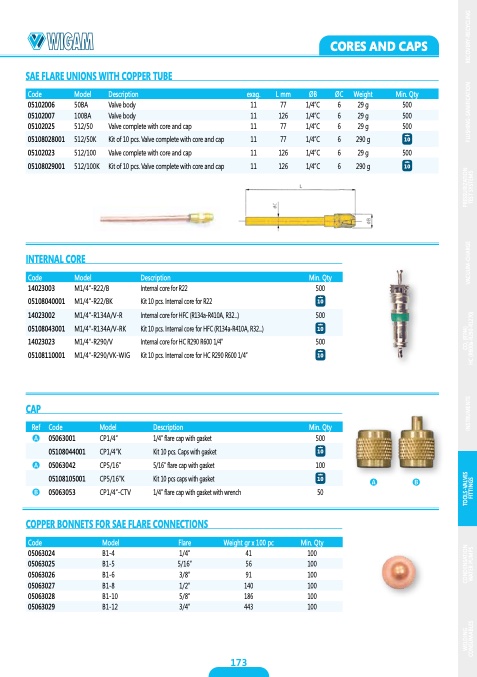Kit 10 pcs. Internal core for HC R290 R600 1/4”