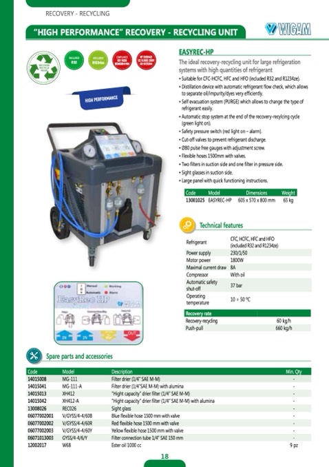 • Suitable for CFC-HCFC, HFC and HFO (included R32 and R1234ze).