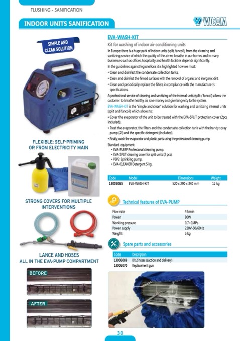EVA-WASH-KIT is the “simple and clean” solution for washing and sanitizing internal units