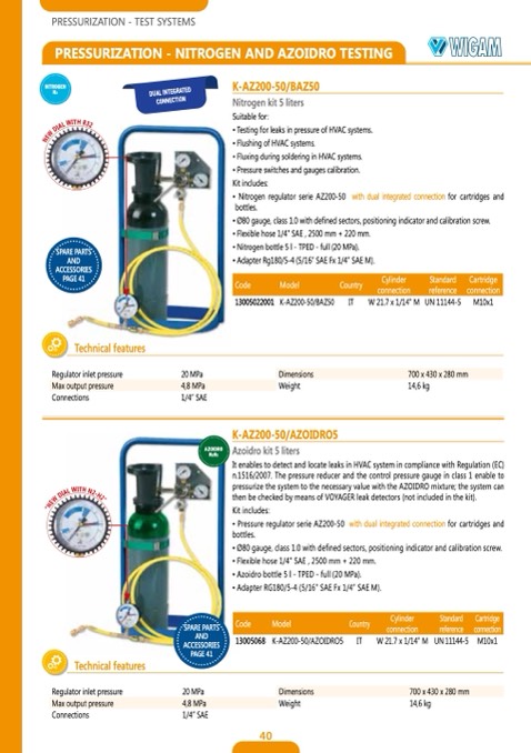 • Nitrogen regulator serie AZ200-50 with dual integrated connection for cartridges and