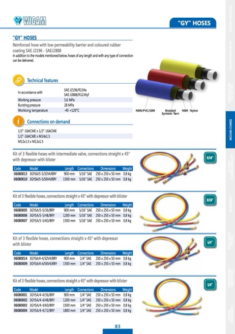 In addition to the models mentioned below, hoses of any length and with any type of connection