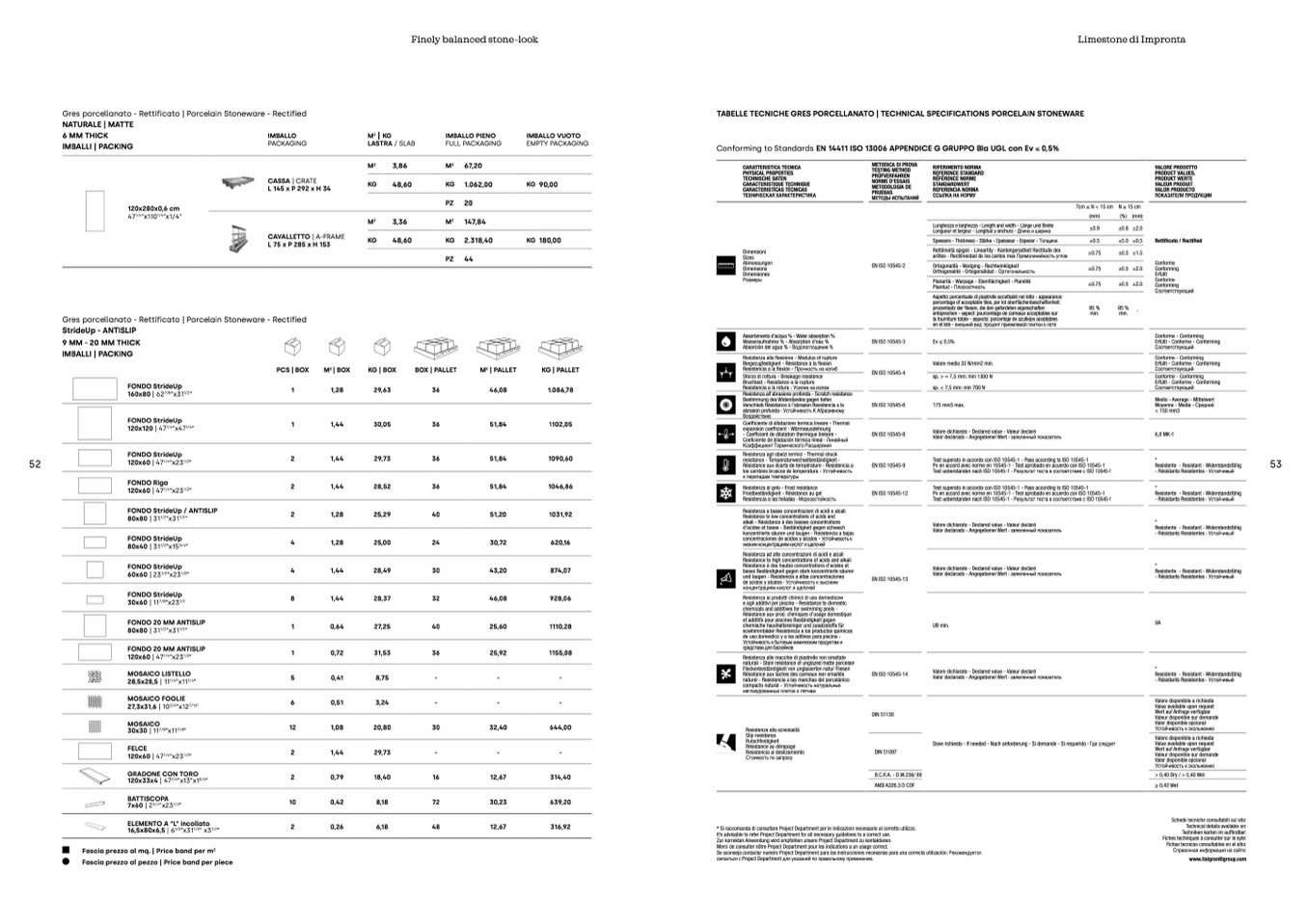 TABELLE TECNICHE GRES PORCELLANATO | TECHNICAL SPECIFICATIONS PORCELAIN STONEWARE