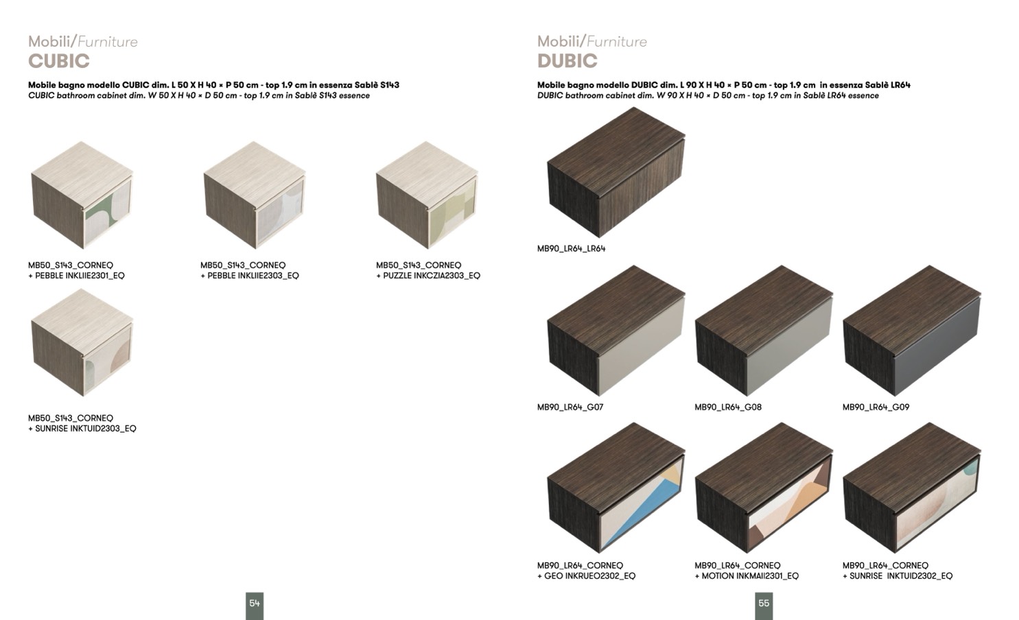 CUBIC bathroom cabinet dim. W 50 X H 40 x D 50 cm - top 1.9 cm in Sablè S143 essence