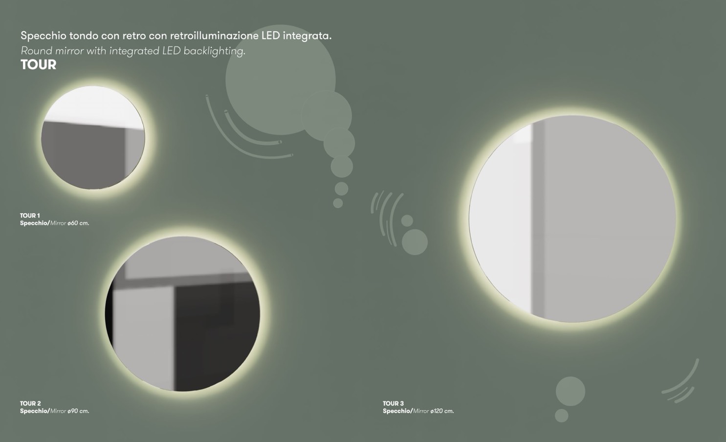 Specchio tondo con retro con retroilluminazione LED integrata.
