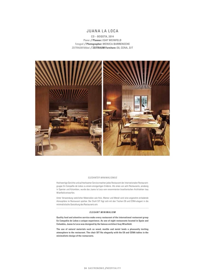 Atmosphäre im Restaurant spürbar. Der Stuhl SIT fügt sich mit den Tischen E8 und CENA elegant in die