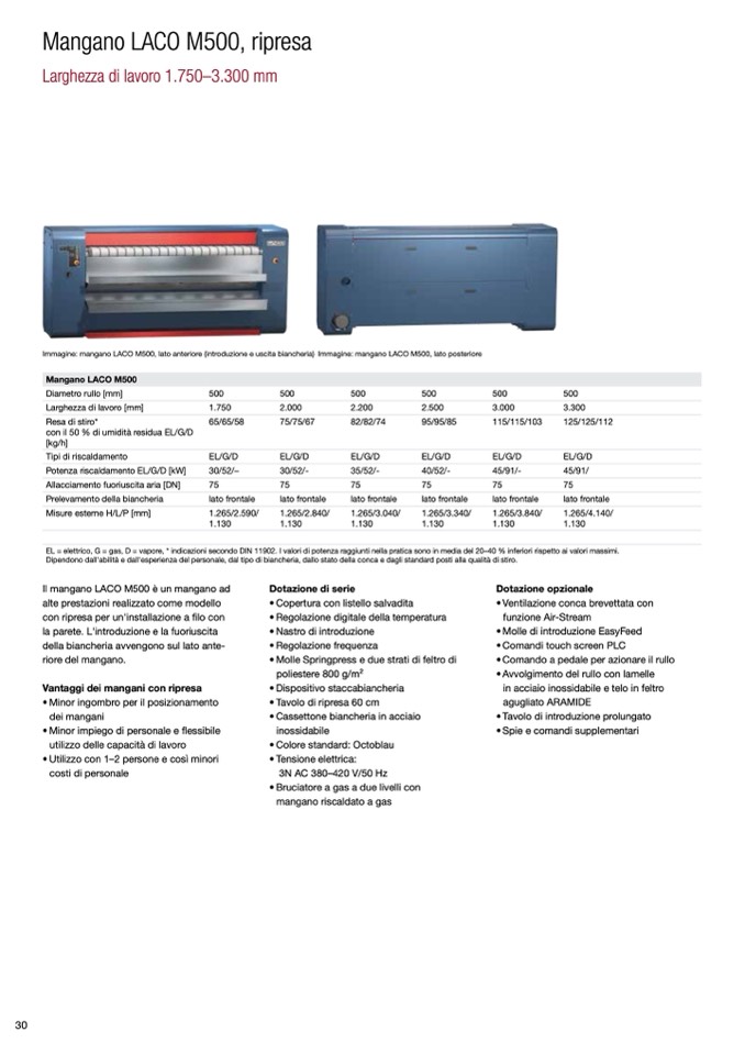 Immagine: mangano LACO M500, lato anteriore (introduzione e uscita biancheria) Immagine: mangano LACO M500, lato posteriore