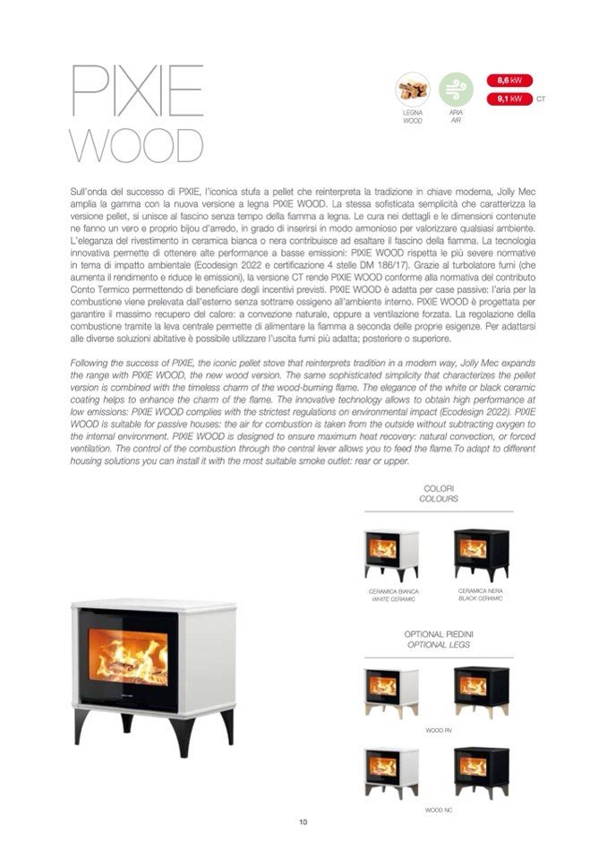 amplia la gamma con la nuova versione a legna PIXIE WOOD. La stessa sofisticata semplicità che caratterizza la