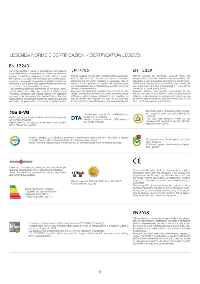 I prodotti JOLLY MEC rispondono ai requi-
