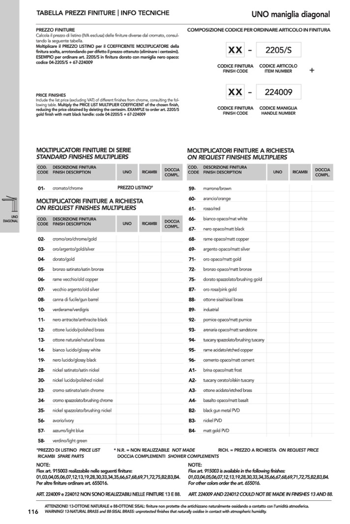 WARNING! 13-NATURAL BRASS and 88-SISAL BRASS: unprotected finishes that naturally oxidise in contact with atmospheric humidity.