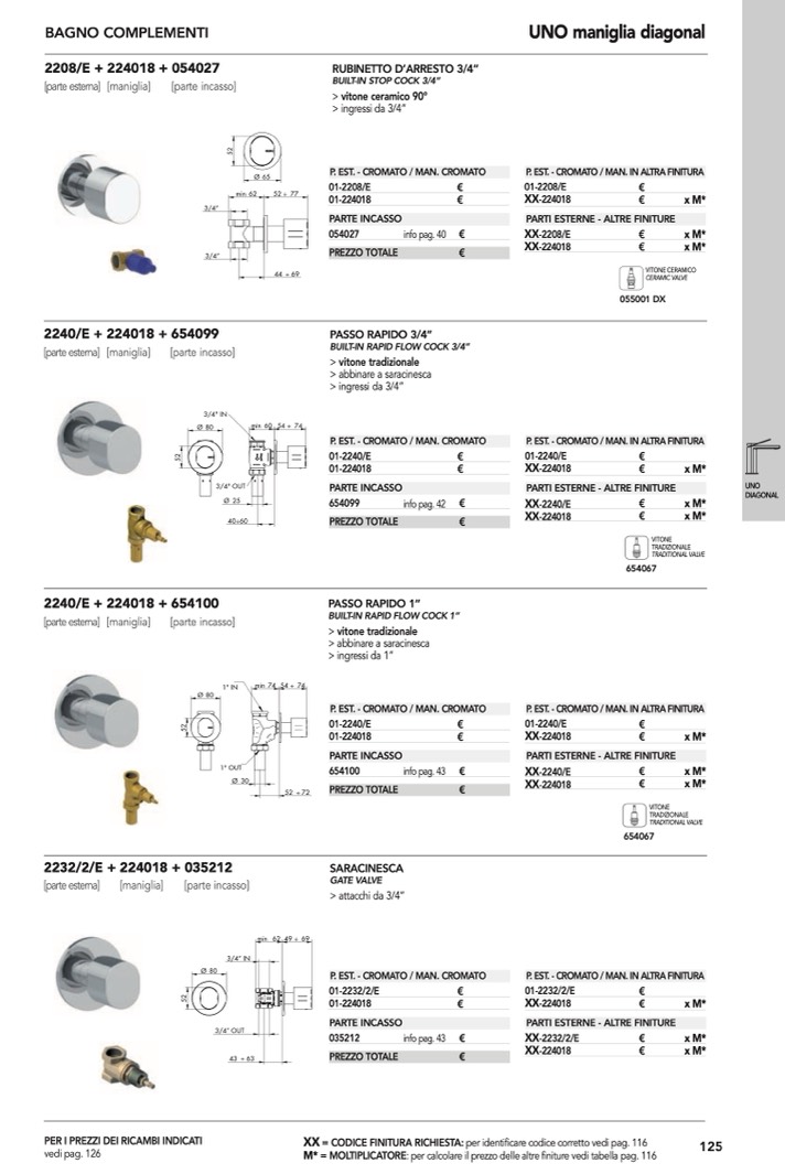 : per calcolare il prezzo delle altre finiture vedi tabella pag. 116