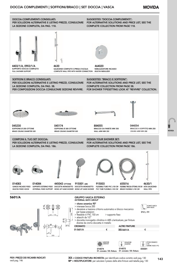 : per calcolare il prezzo delle altre finiture vedi tabella pag. 130
