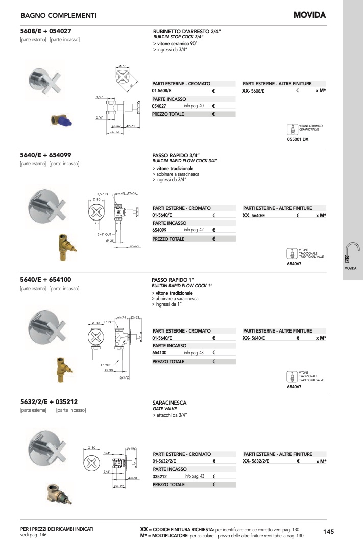 : per calcolare il prezzo delle altre finiture vedi tabella pag. 130