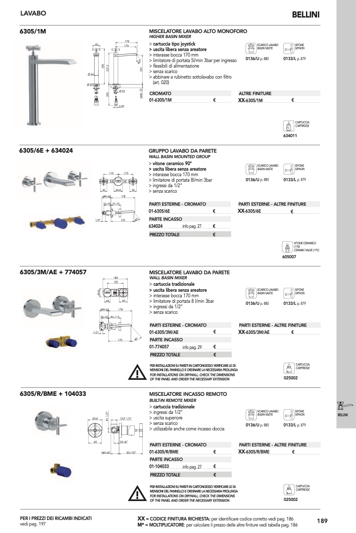 : per calcolare il prezzo delle altre finiture vedi tabella pag. 186