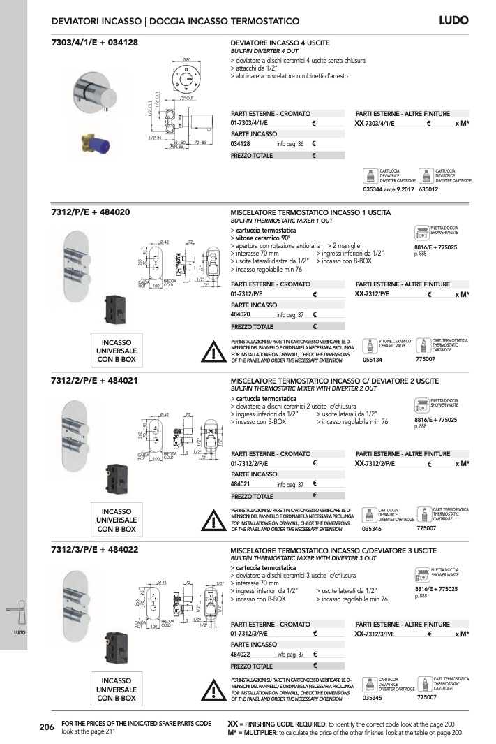 BUILT-IN THERMOSTATIC MIXER WITH DIVERTER 2 OUT