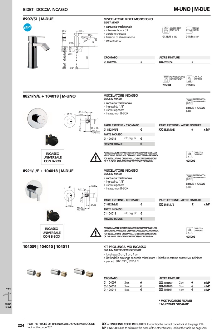 > kit fondello prolunga cartuccia miscelatore + bicchiere esterno sostitutivo in finitura