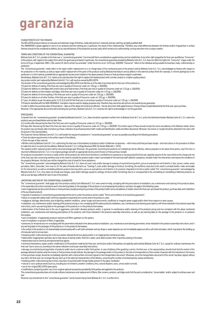 The “conventional guarantee” shall apply only if the products sold by Carlo Bellosta & C. S.r.l. were used normally, complying with the prescriptions of installation, use, maintenance and cleaning of the products above,