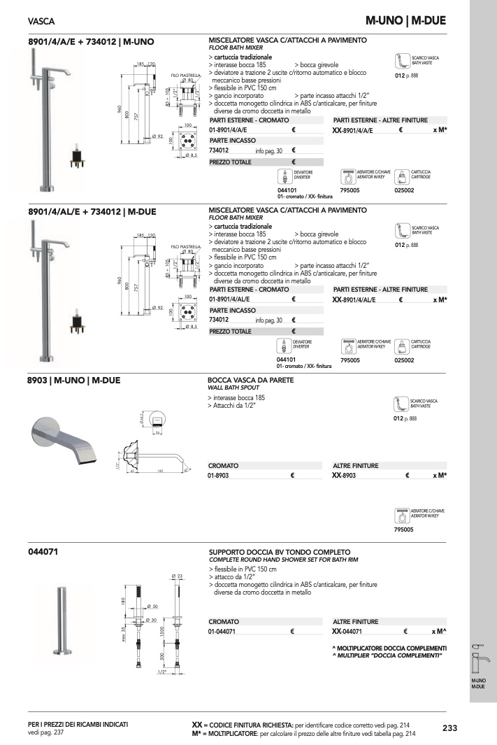 : per calcolare il prezzo delle altre finiture vedi tabella pag. 214