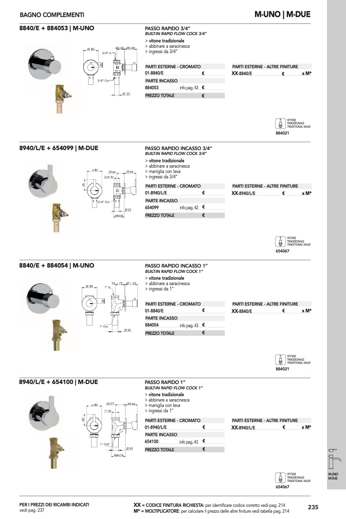: per calcolare il prezzo delle altre finiture vedi tabella pag. 214