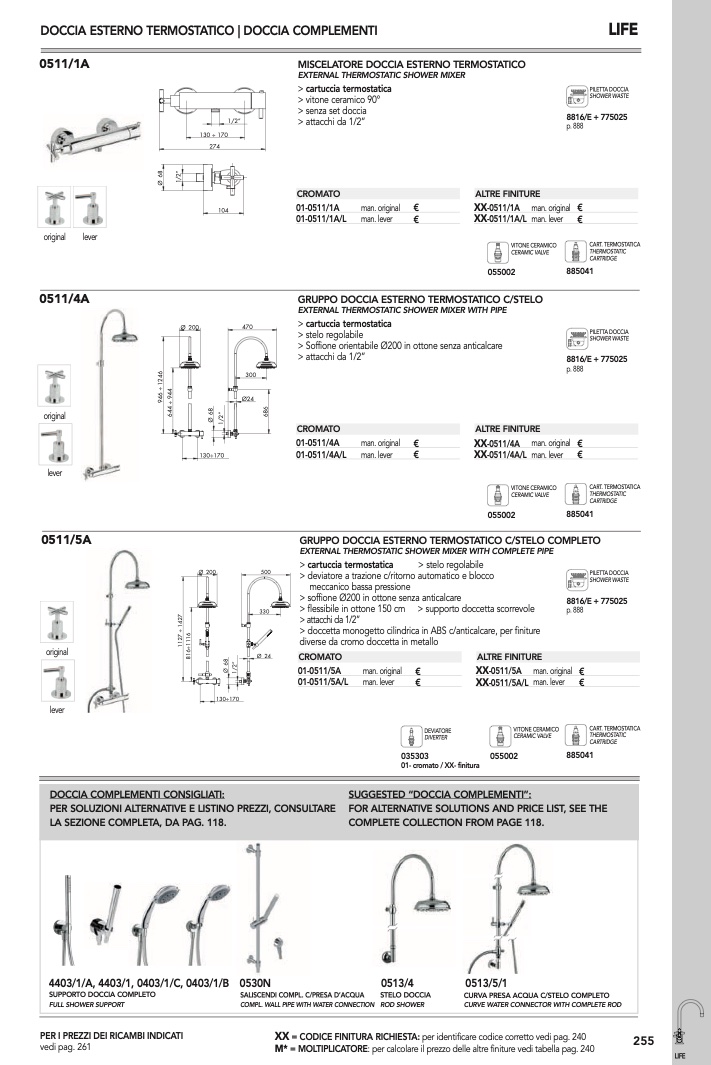 : per calcolare il prezzo delle altre finiture vedi tabella pag. 240