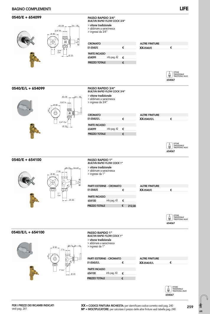 : per calcolare il prezzo delle altre finiture vedi tabella pag. 240