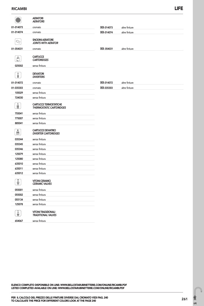 ELENCO COMPLETO DISPONIBILE ON LINE: WWW.BELLOSTARUBINETTERIE.COM/ONLINE/RICAMBI.PDF