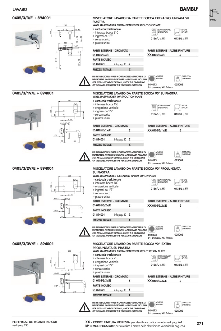 : per calcolare il prezzo delle altre finiture vedi tabella pag. 264