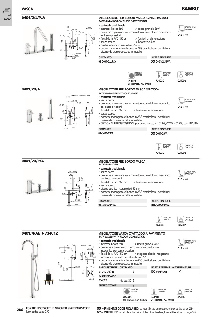 > OPTIONAL PREDISPOSIZIONI per bordo vasca, art. 012/3, 012/6 e 012/7, pag. 873/874