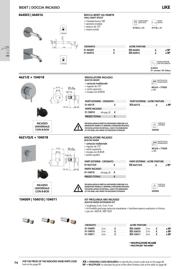 > kit fondello prolunga cartuccia miscelatore + bicchiere esterno sostitutivo in finitura