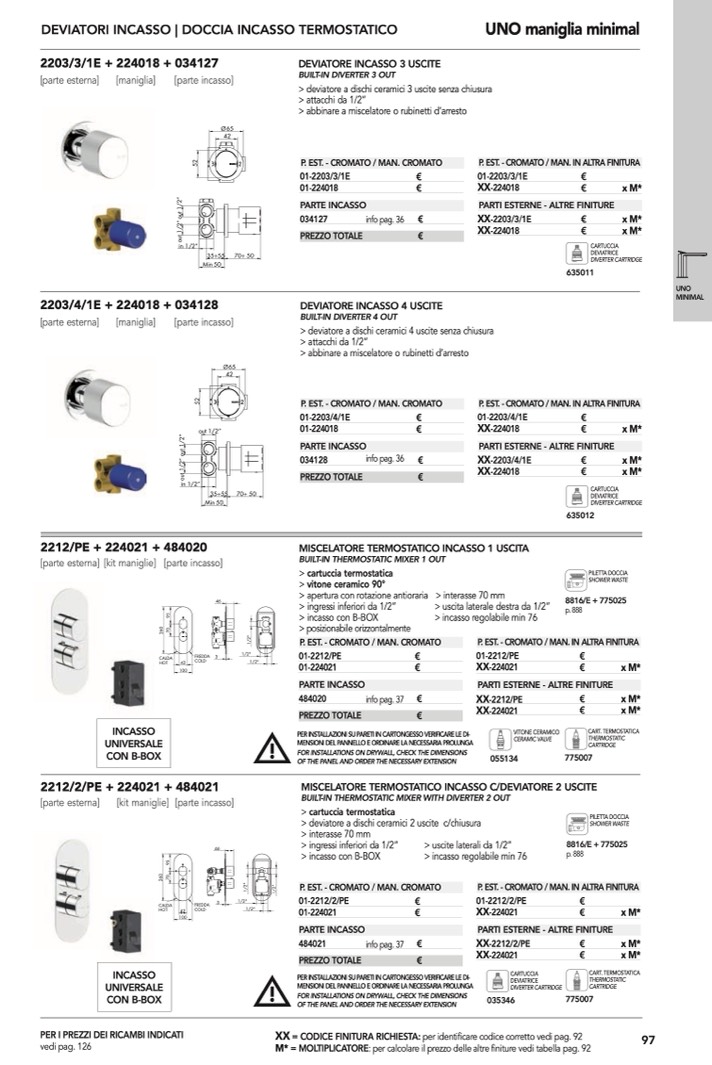 BUILT-IN THERMOSTATIC MIXER 1 OUT