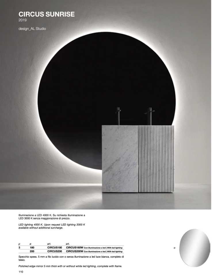 Specchio spess. 5 mm a filo lucido con o senza illuminazione a led luce bianca, completo di