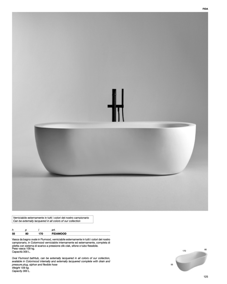 available in Colormood internally and externally lacquered complete with drain and