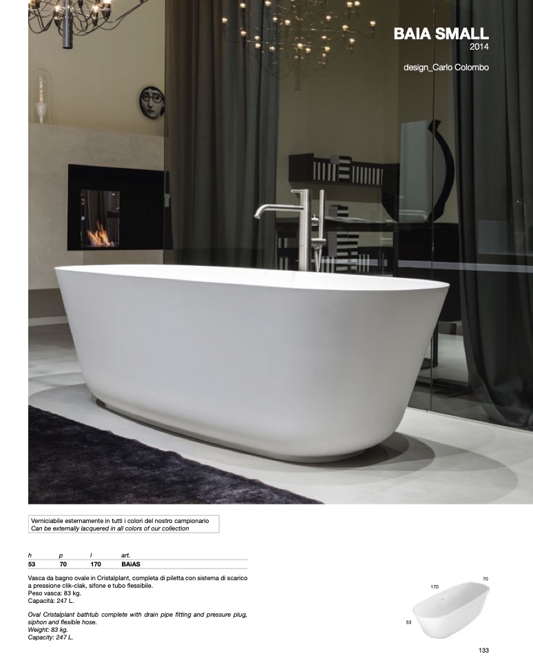 Vasca da bagno ovale in Cristalplant, completa di piletta con sistema di scarico