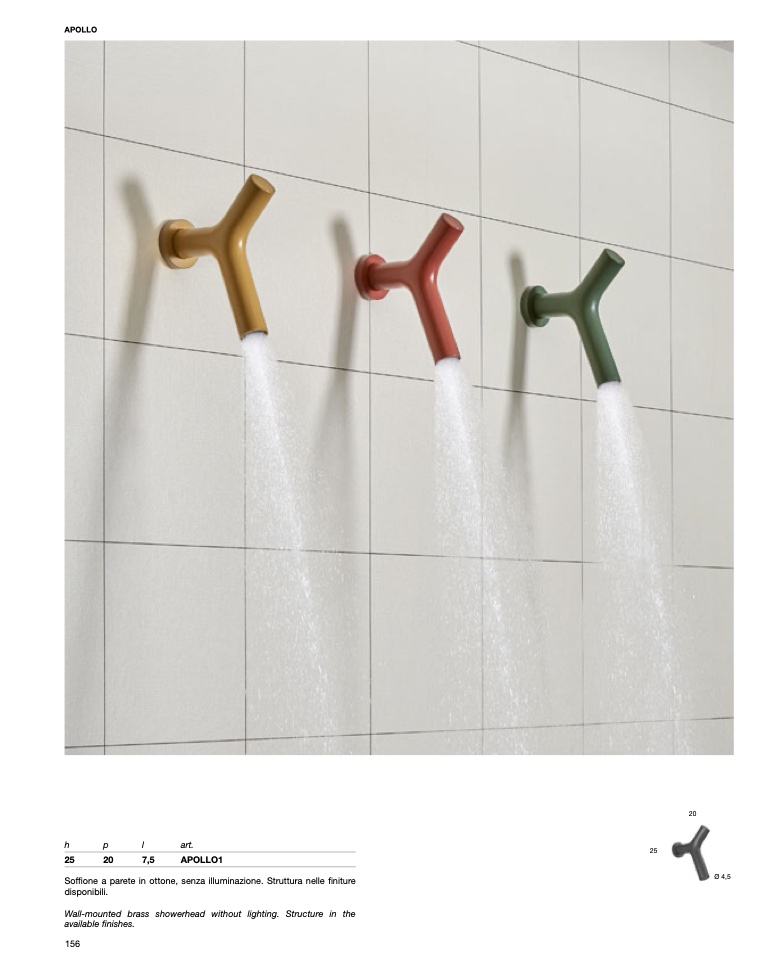 Soffione a parete in ottone, senza illuminazione. Struttura nelle finiture