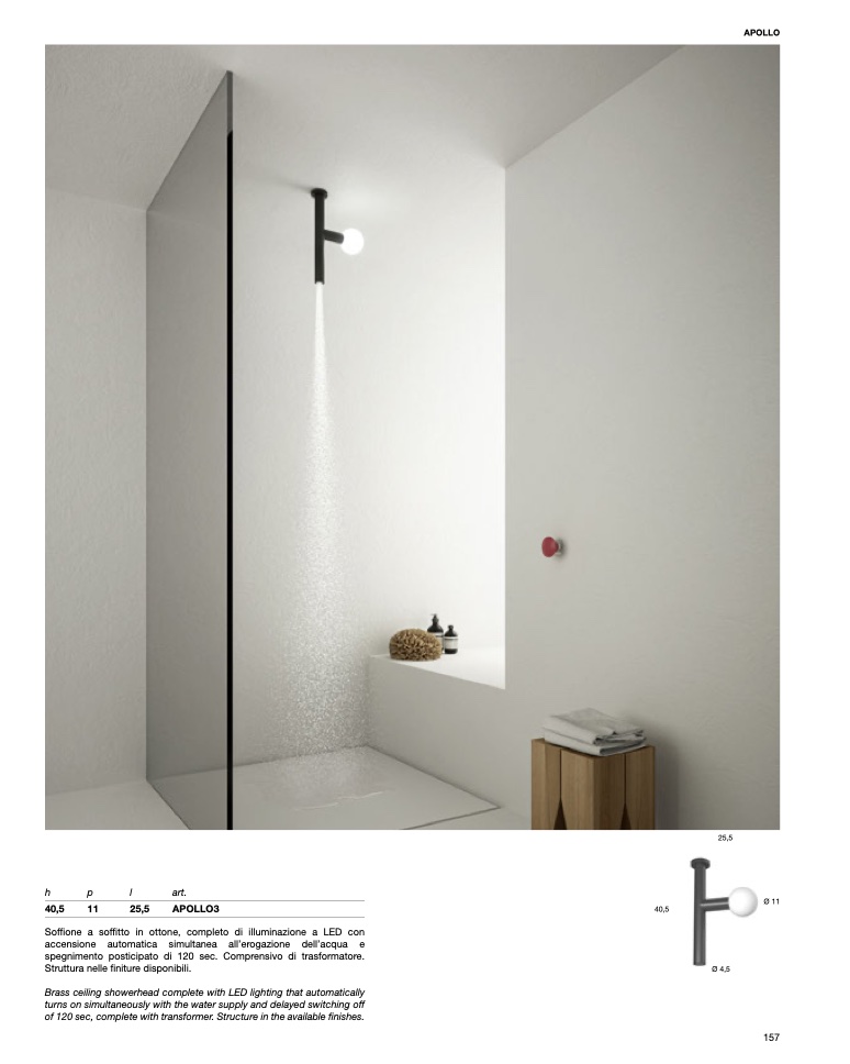 Soffione a soffitto in ottone, completo di illuminazione a LED con
