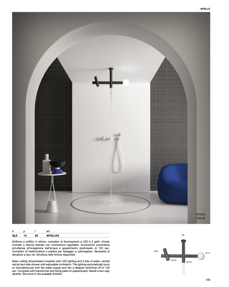 centrale e doccia laterale con inclinazione regolabile. Accensione automatica