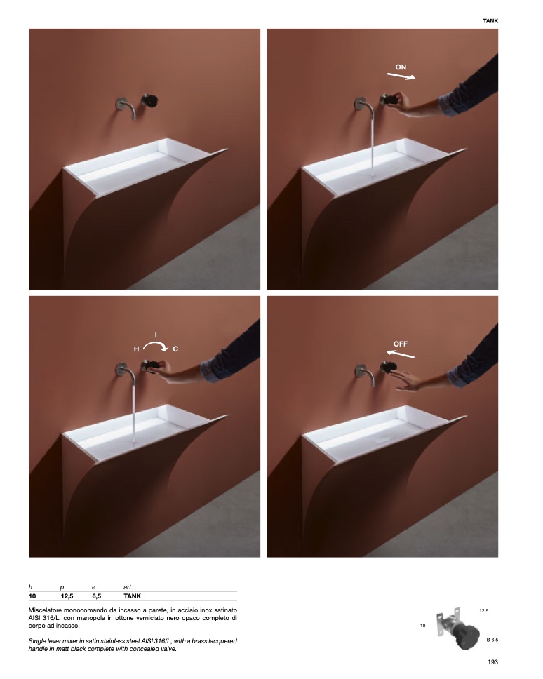 AISI 316/L, con manopola in ottone verniciato nero opaco completo di